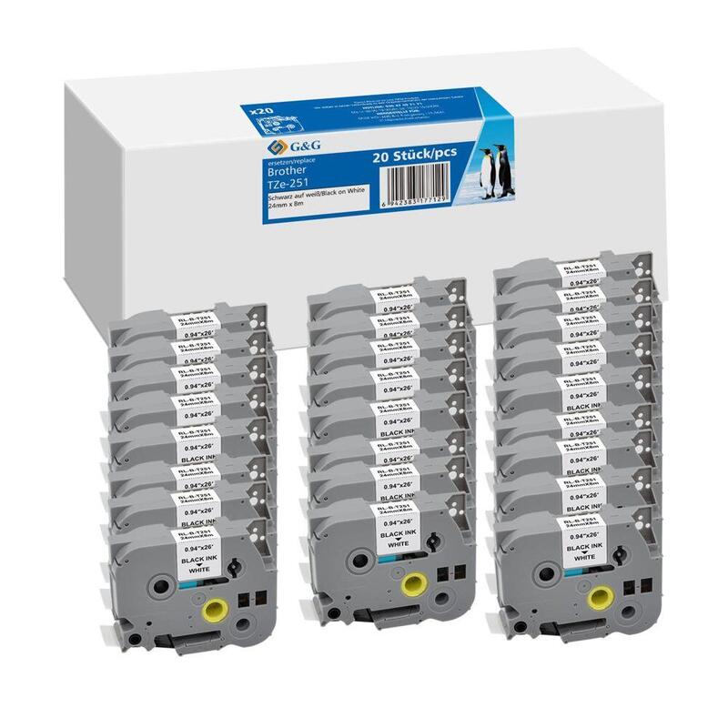20x G&G Schriftband 24mm X 8m Sw Ws Komp. M. Brother Tze-251