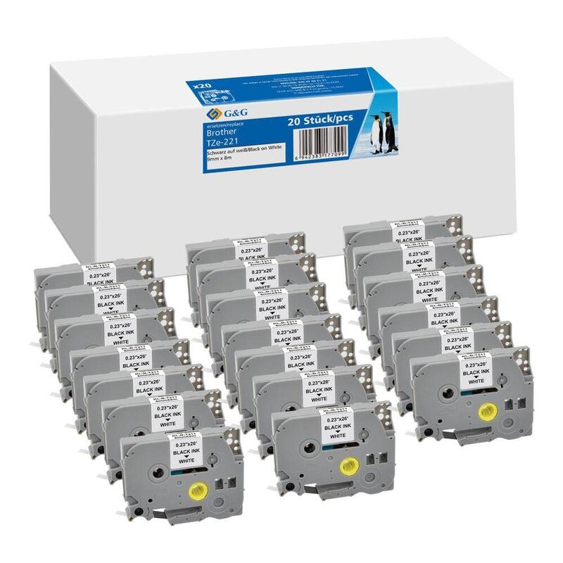 20x G&G Schriftband 9mm X 8m Sw- Ws Komp. M. Brother Tze-221