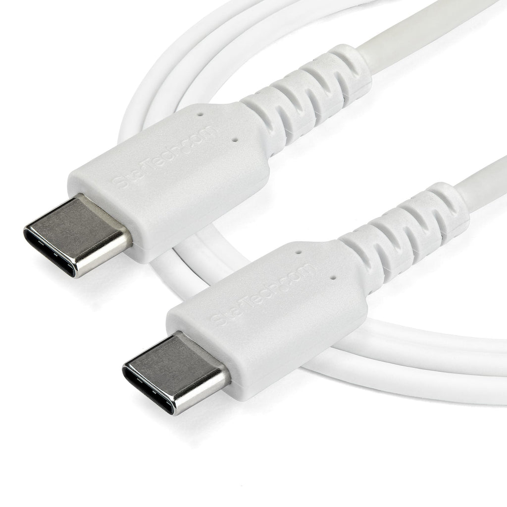 - ESPECIFICACIONES DEL CABLE Longitud: 2m - Color: Blanco - Conectores: USB-C a USB-C Macho/Macho - Rendimiento: USB 2.0 - Refuerzo: Fibra de aramida - Potencia: 3A/60W - Tipo de cubierta: TPE - Blindaje: Protección EMI