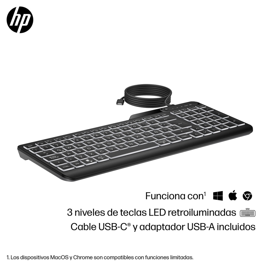 HP 405 Multi-Device Backlit Wired Keyboard teclado Oficina USB QWERTY Inglés Negro