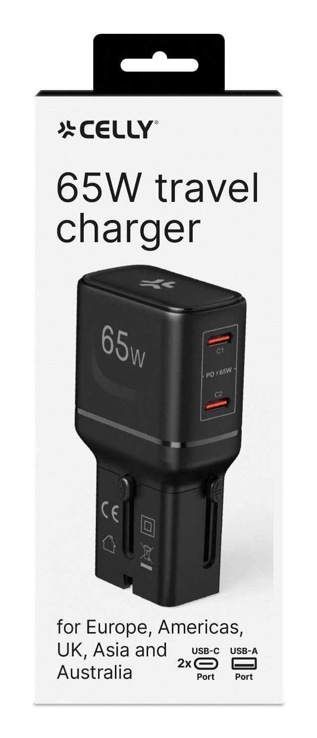 Celly MULTIPLUGSL65W cargador de dispositivo móvil Auriculares, Smartphone, Tableta Negro Corriente alterna Carga rápida Interior