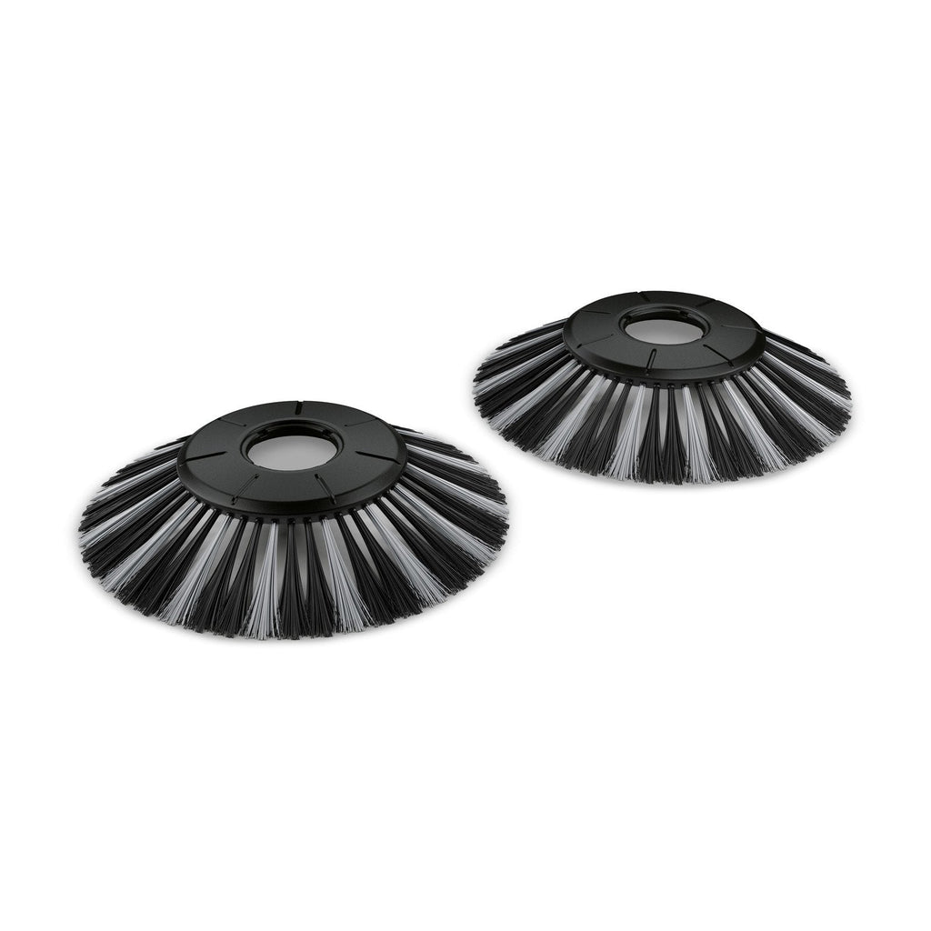 Los cepillos laterales con cerdas de tipo estándar y cerdas tres veces más duras resultan perfectos para soltar y barrer suciedad húmeda. Se recomienda, por ejemplo, para barrer el follaje mojado por la lluvia y adherido al suelo. Los cepillos laterales son aptos para las barredoras S 4 hasta S 4 Twin.