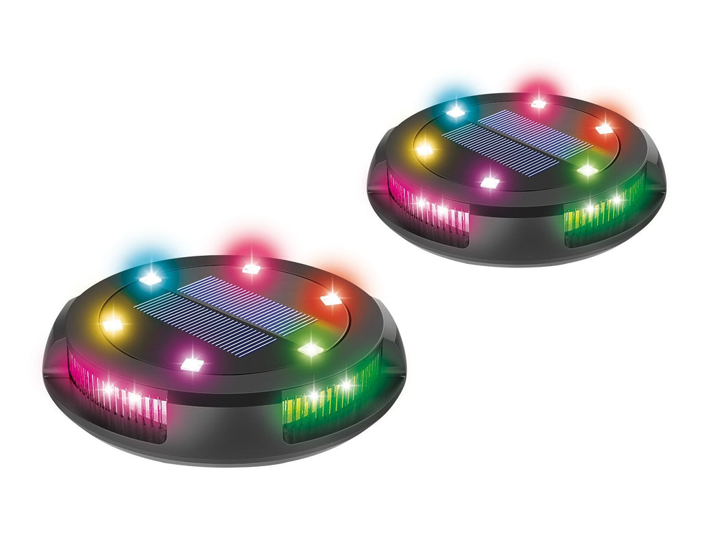Juego de luces LED solares para jardín con fuente de luz integrada. Color de la luz: RGB. Funciona con una batería solar. Capacidad de la batería: 600 mAh; duración de la iluminación: 10-12 horas.