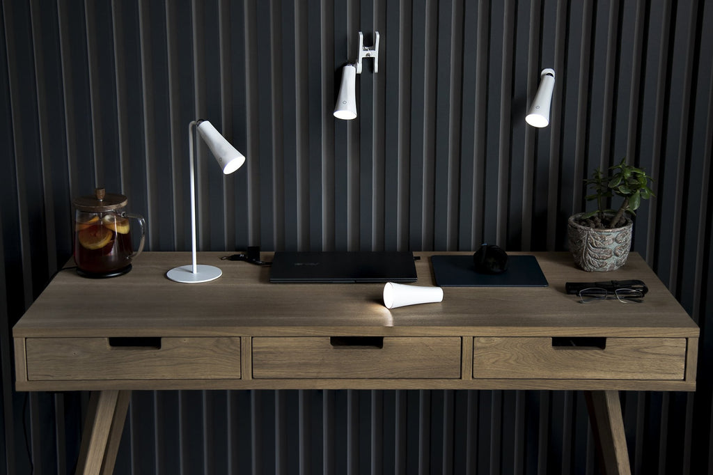 ¿Escritorio, mesilla de noche o tal vez una mesa? Simplemente cambie la lámpara de sitio y utilice la luz donde la necesite, sin tener que invertir en varias lámparas polvorientas.
