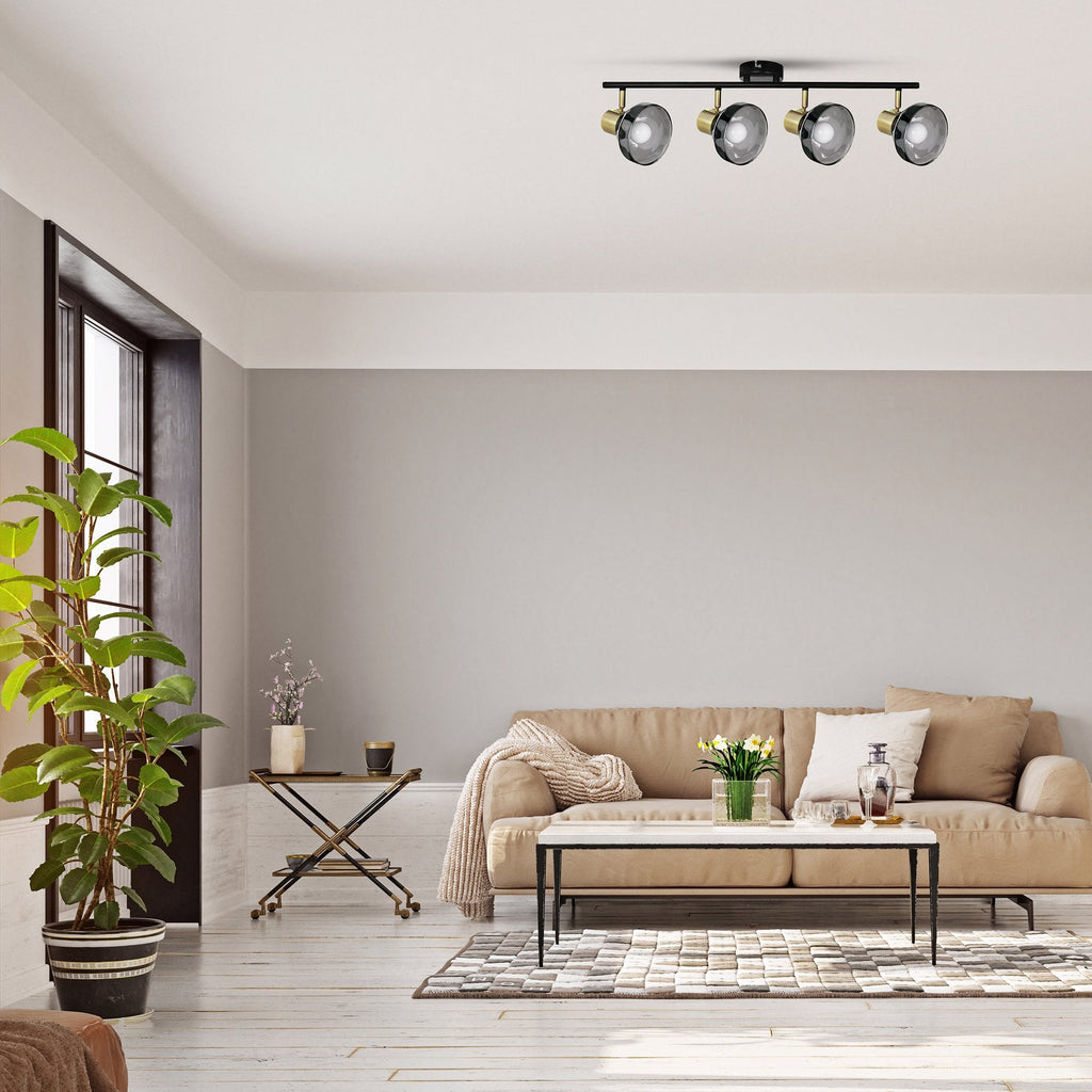 Activejet LISA plafón doble negro y dorado E14 aplique para salón, Cepillado, Alrededor, 4 bombilla(s), E14, IP20, Negro, Oro