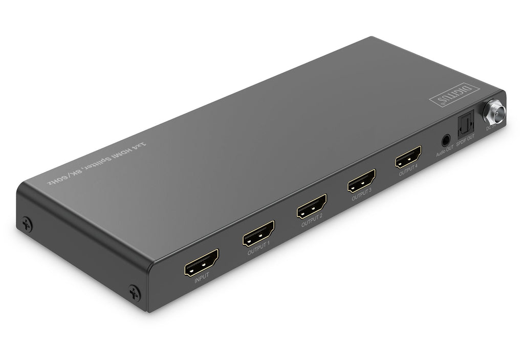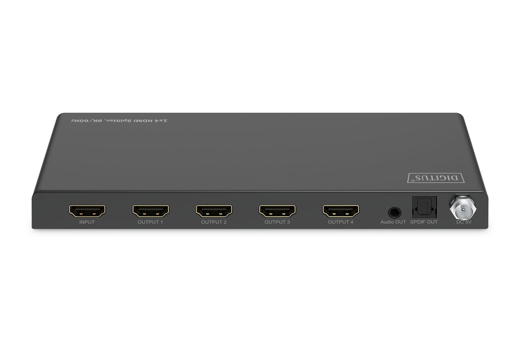 El Divisor HDMI de DIGITUS® distribuye/espeja las señales de audio y vídeo de su dispositivo HDMI a 4 televisores, pantallas o proyectores con una resolución máxima de 8K/60Hz