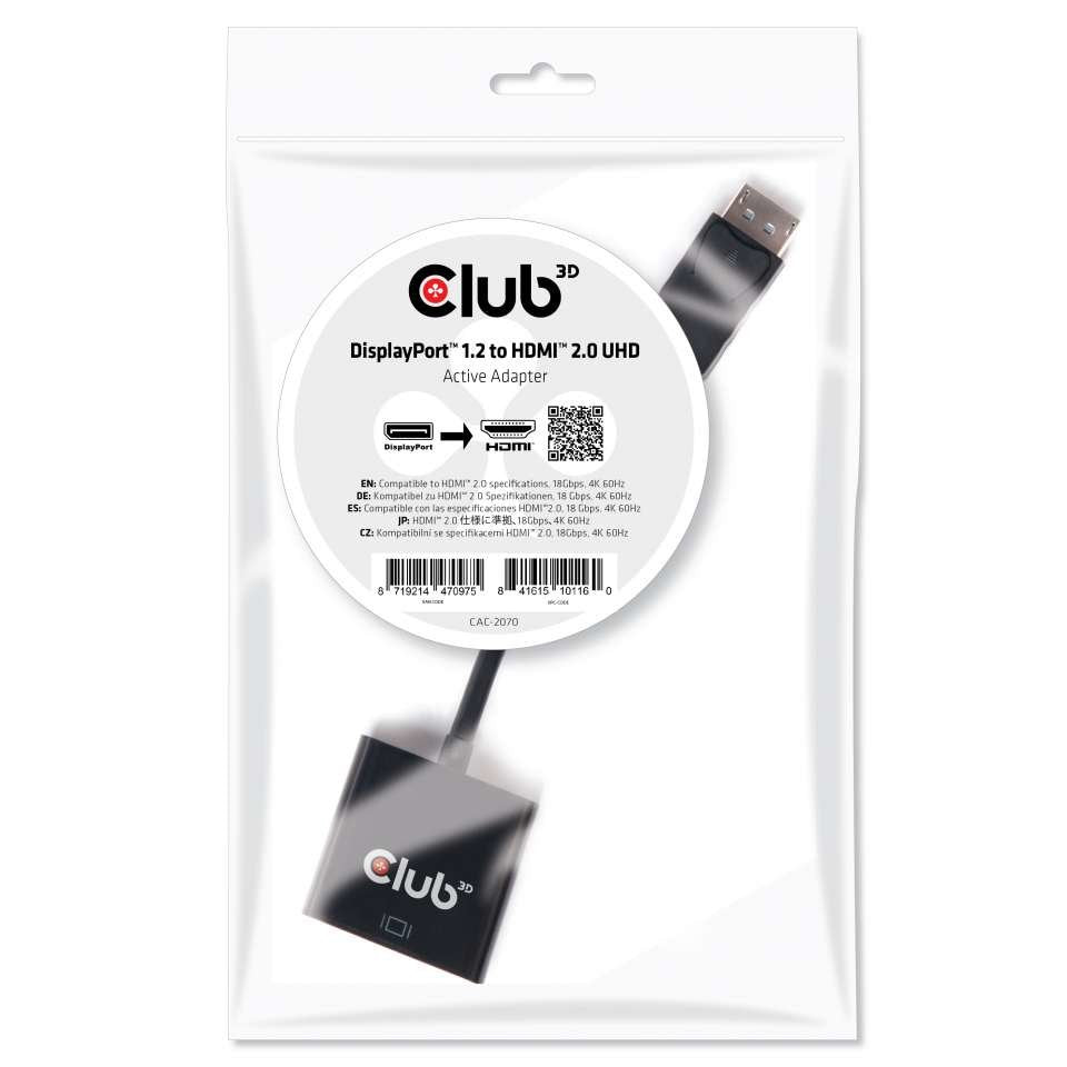 CAC-2070: el Club 3D CAC-2070 es un convertidor de señal HDMI ™ 2.0 activo. El adaptador activo UHD DisplayPort ™ 1.2 a HDMI ™ 2.0 4K 60Hz es la solución más fácil para conectar su PC o portátil DisplayPort ™ 1.2 Game a un televisor, monitor o proyector 4K UHD habilitado para HDMI ™. El adaptador cumple con la especificación HDMI ™ 2.0 que permite la transferencia de TMDS a 6 Gbps por canal. La interfaz en el adaptador tiene tres carriles para datos HDMI, reloj, señal HPD y potencia, que ofrece un rendimiento total de TMDS de 18 Gbps.