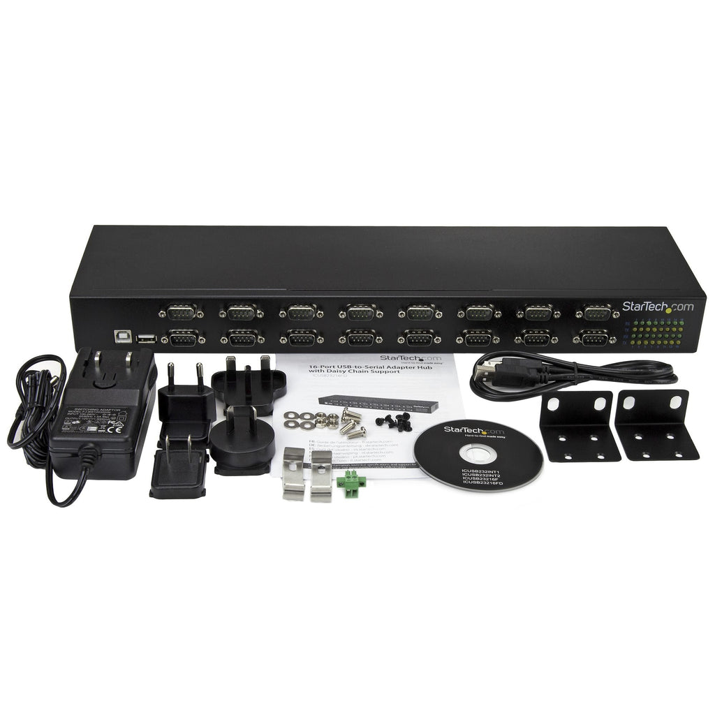 Este concentrador serie USB para montaje en rack le permite agregar 16 puertos serie (RS232), con control total desde su ordenador portátil o de sobremesa, mediante un solo puerto USB. La función de conexión en serie constituye una forma económica y escalable de aumentar el número de puertos serie y ampliar su disponibilidad a medida que aumenten sus necesidades al respecto, sin tener que invertir en un concentrador serie más costoso.