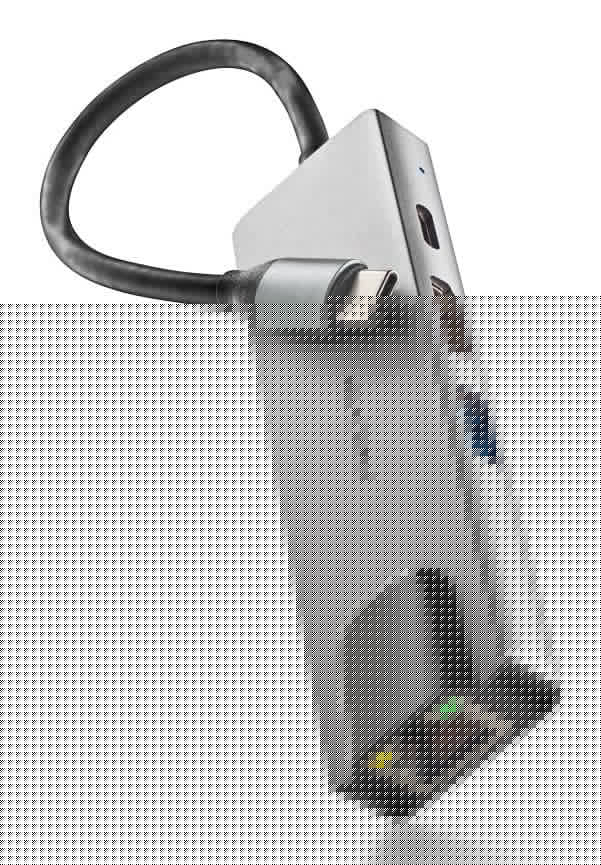 Adaptador multipuerto USB-C ultraligero de aluminio 4 en 1 que multiplica el número de puertos del ordenador portátil o PC.