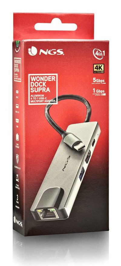 NGS NGS-HUB-0140 hub de interfaz USB 2.0 Type-C 5000 Mbit/s Aluminio, Negro