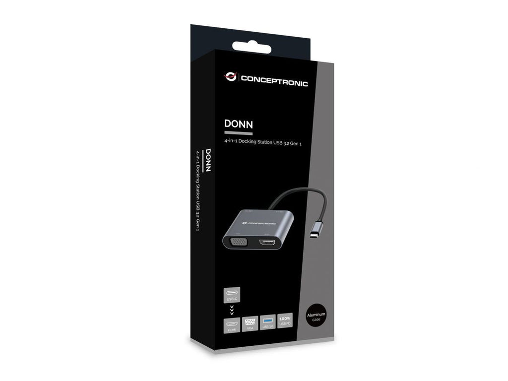 Conceptronic DONN16G, Alámbrico, USB 3.2 Gen 1 (3.1 Gen 1) Type-C, 100 W, Gris, 5 Gbit/s, 4K Ultra HD