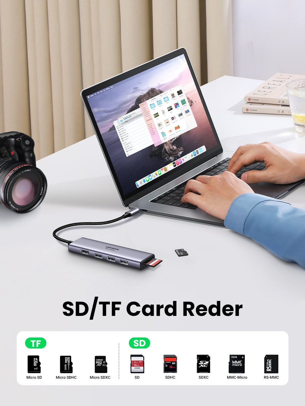 Ugreen CM511 5-in-1 Adapter USB-C Hub to 3x USB3.0 + HDMI + TF/SD Gray