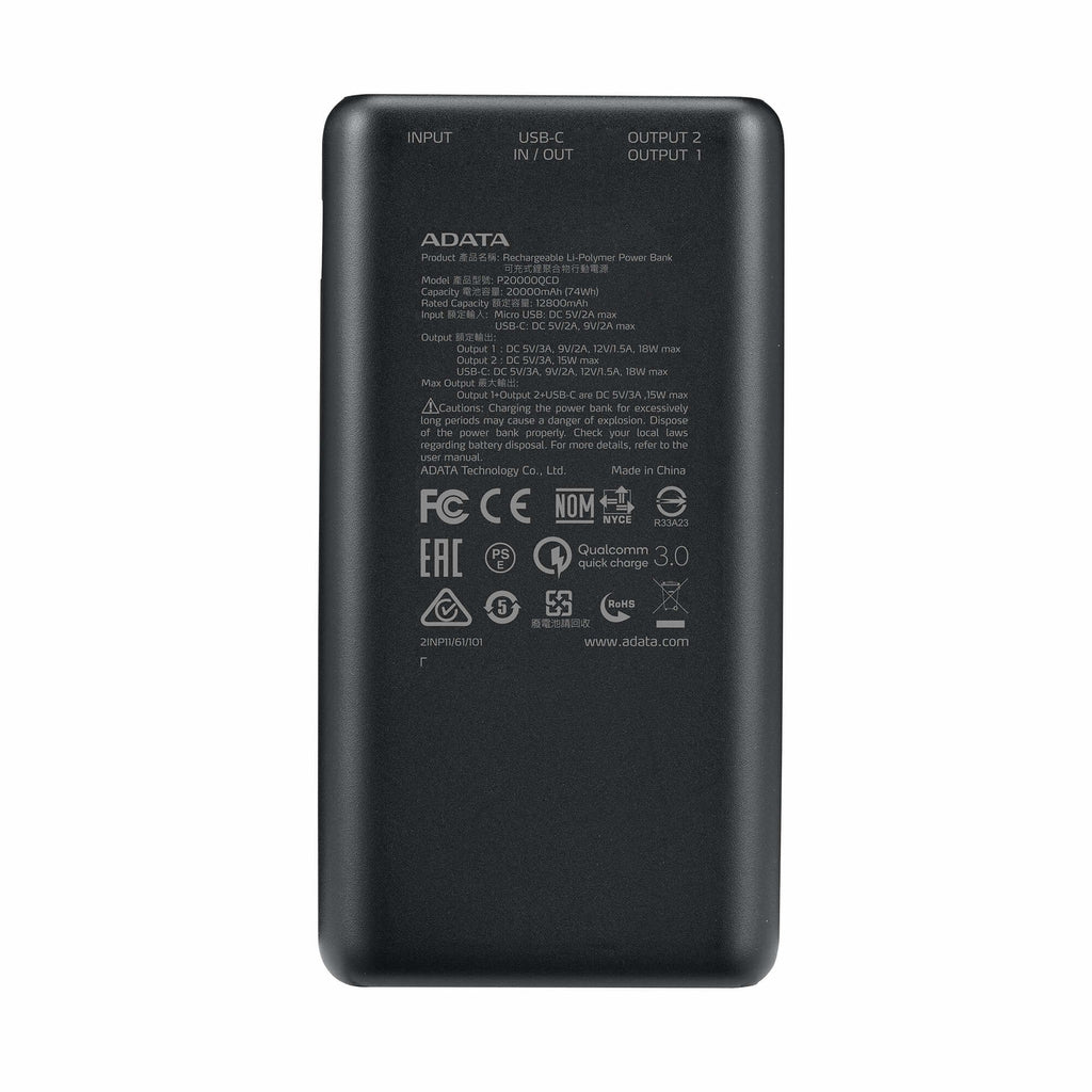 ADATA P20000QCD, 20000 mAh, Polímero de litio, Quick Charge 3.0, 15 W, Blanco