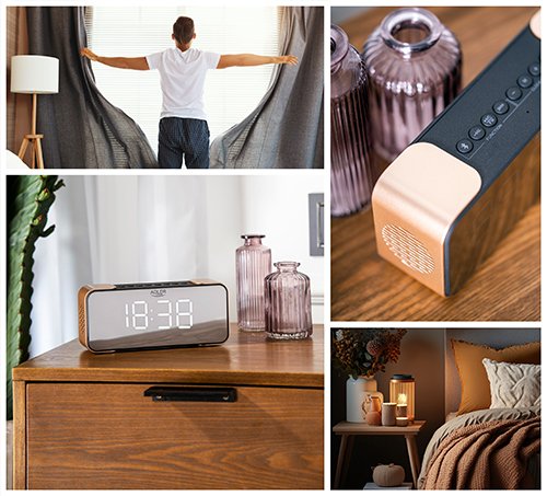 Adler AD 1190CR, Reloj despertador digital, Negro, Cobre, 12/24h, FM, 87,5 - 108 MHz, MP3