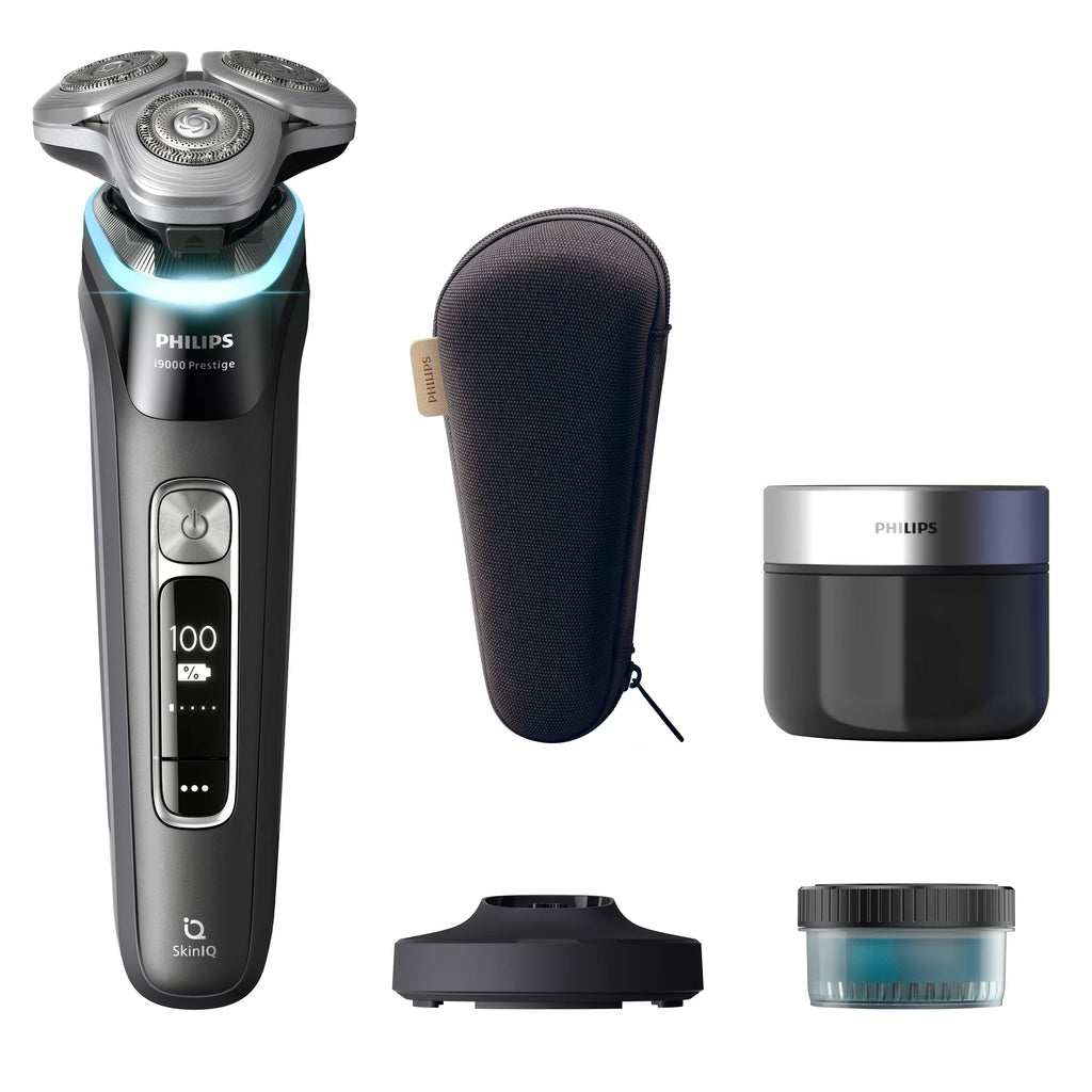 Philips i9000 Prestige, con sistema de afeitado Levanta y Corta de triple acción y cabezal de precisión de 360° compacto flexible; corta el vello al nivel de la piel, incluso en las zonas difíciles. Además, gracias a la IA, SkinIQ detecta, guía y se adapta para brindar un confort inteligente para la piel.