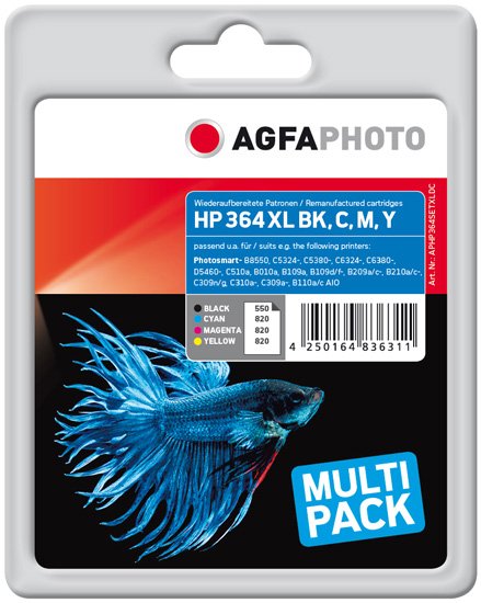 AgfaPhoto APHP364SETXLDC, Negro, Cian, Magenta, Amarillo, 4 pieza(s), 550 páginas, 820 páginas, Multipack