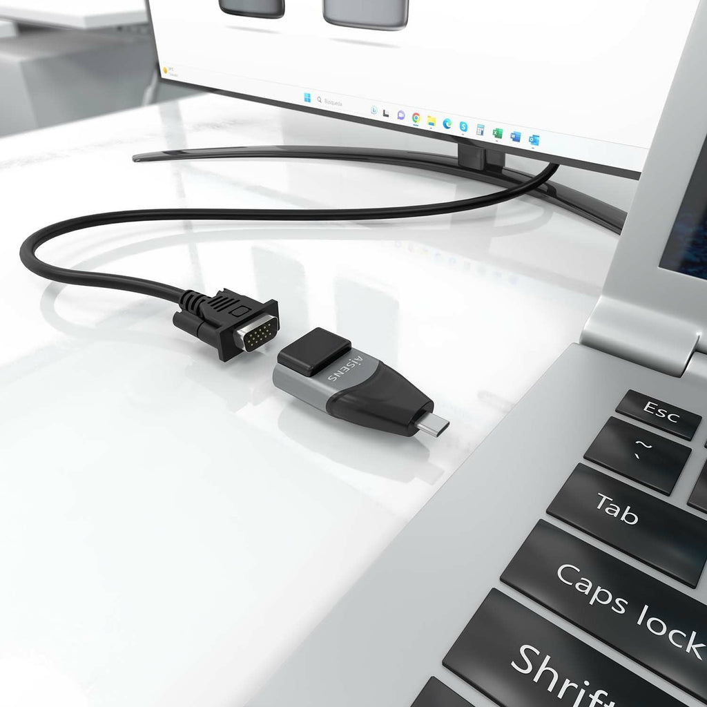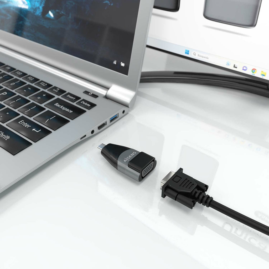 AISENS® – Adaptador Conversor Aluminio USB-C a VGA, USB-C/M-HDB15/H, Gris