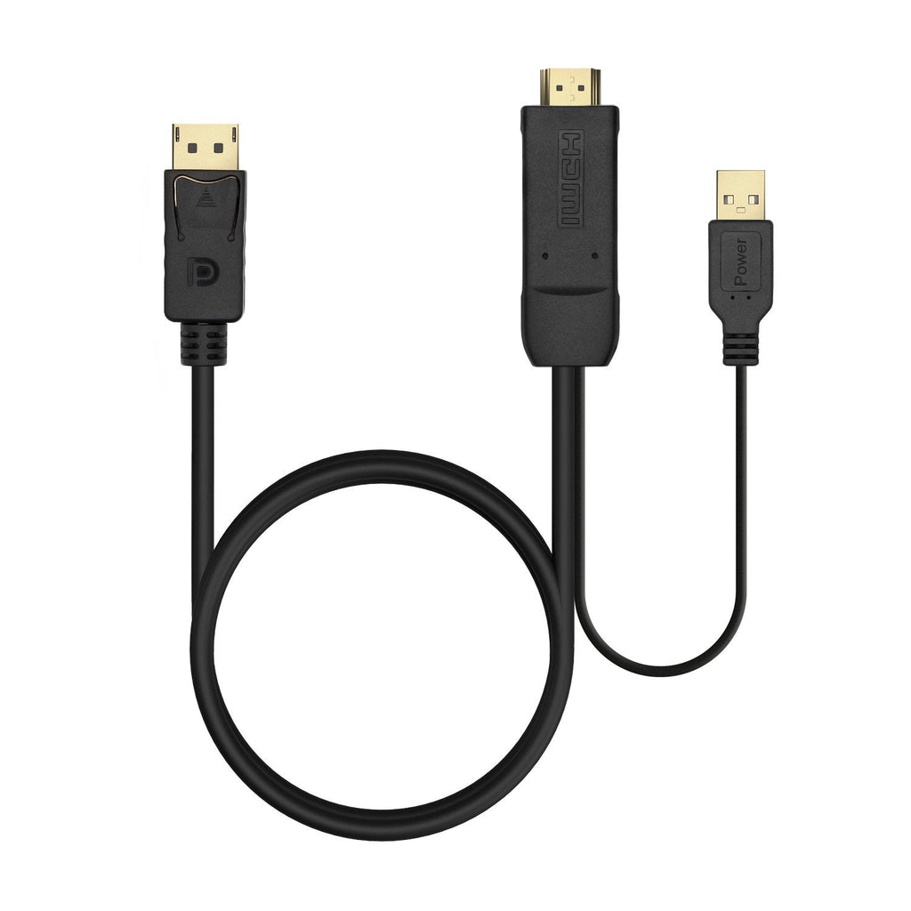 AISENS® – Cable conversor activo HDMI 2.0 a DISPLAYPORT 1.2 con conector HDMI macho, USB alimentación macho en un extremo y DISPLAYPORT macho en el otro.
