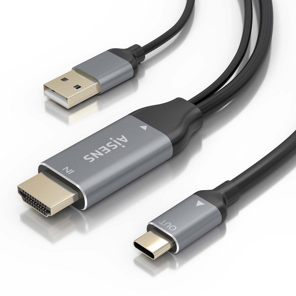 AISENS - Cable Conversor Aluminio HDMI V2.0 A USB-C 4K@60HZ, HDMI/M+USB-A/M-USB-C/M, Negro, 1.8m