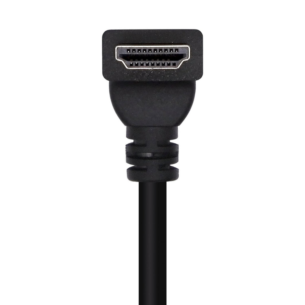Cable HDMI V2.0 premium alta velocidad con Ethernet con conector tipo A macho acodado en un extremo y conector tipo A macho en el otro