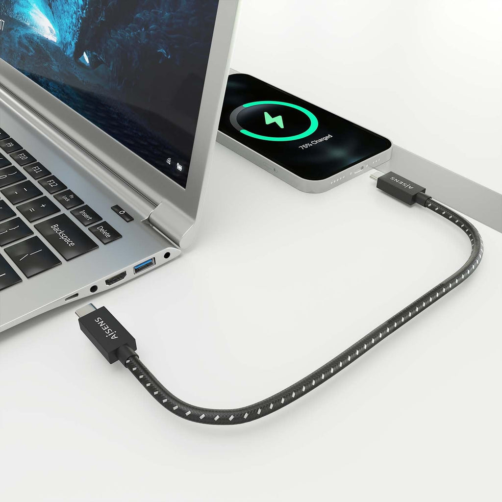 AISENS - Cable USB4 Gen3x2 Aluminio 40Gbps 8K@60Hz 5A 48V 240W E-Mark, Tipo USB-C/M-USB-C/M, Negro, 0.5m