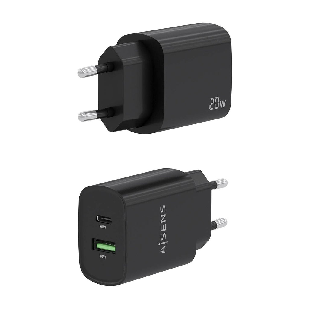 - CARGADOR 20W, 1xUSB-C PD3.0, 1xUSB-A QC3.0, NEGRO