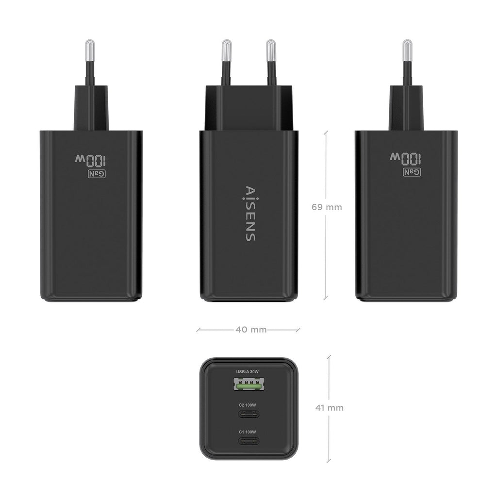 AISENS ASCH-100W3P052-BK cargador de dispositivo móvil Universal Corriente alterna Carga rápida Interior