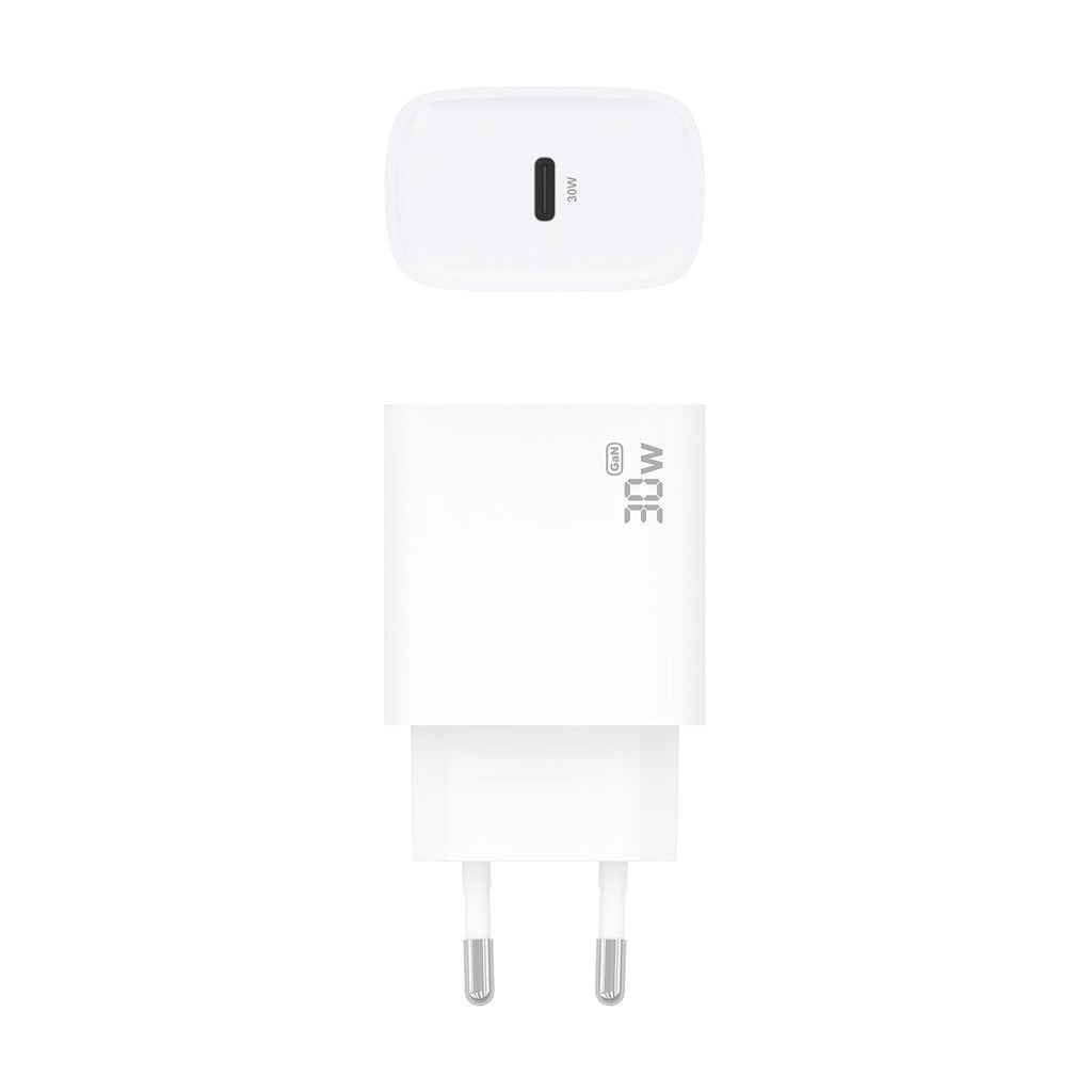 Cargador GaN USB-C 30W para cargar portátiles, móviles, cámaras y tablets etc. Diseño muy elegante, moderno y práctico.