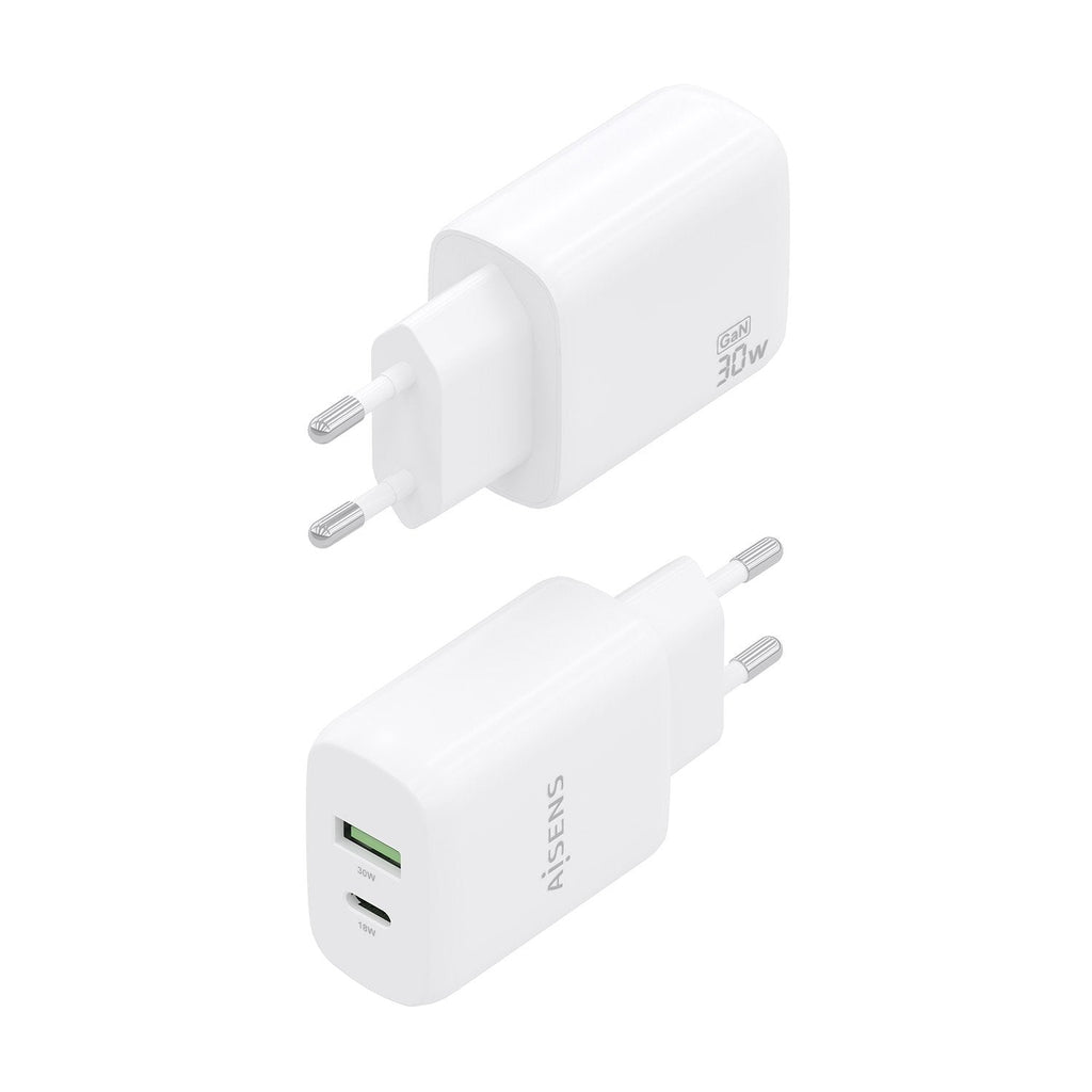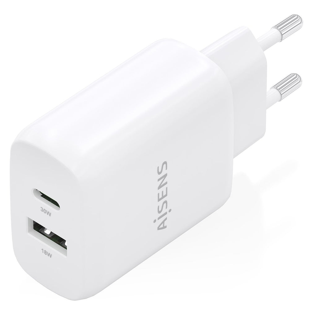AISENS A110-0923 cargador de dispositivo móvil Cámara digital, MP3, MP4, Teléfono móvil, Navegante, Portátil, Consola de juegos portátil, Smartphone, Tableta, Universal Blanco Corriente alterna Carga rápida Interior