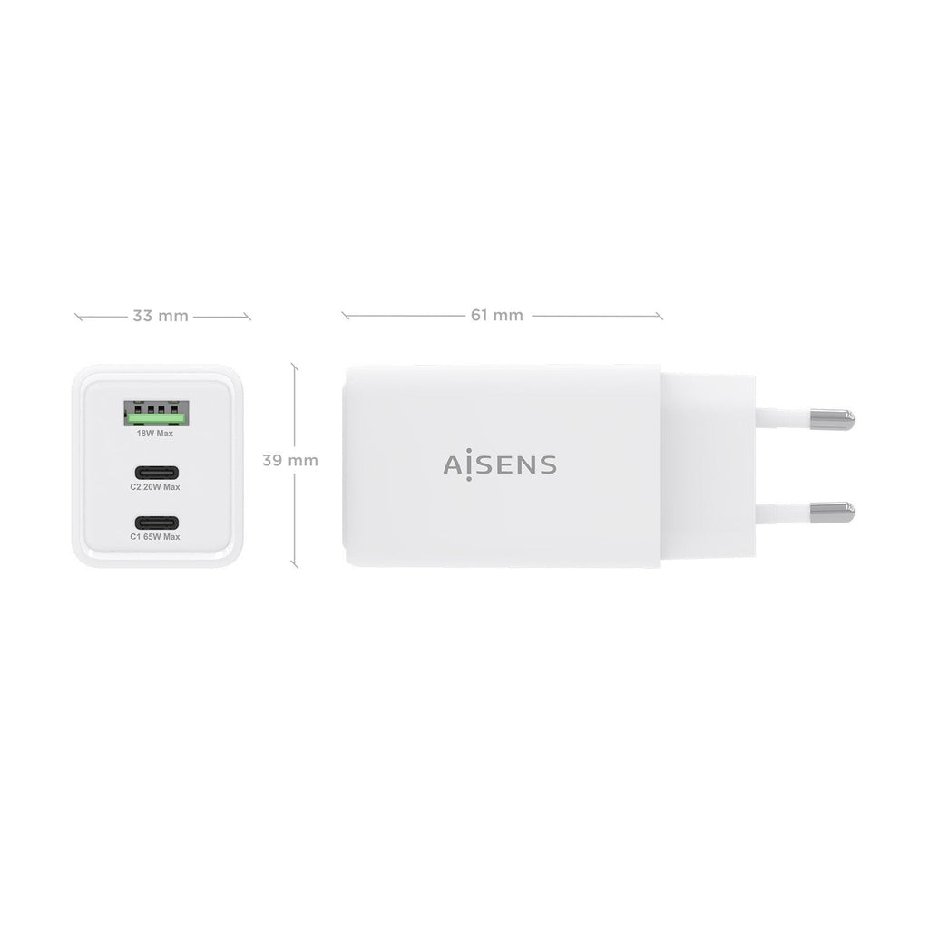 > Cargador GaN USB-C 65W para cargar portátiles, móviles, cámaras y tablets etc. Diseño muy elegante, moderno y práctico.