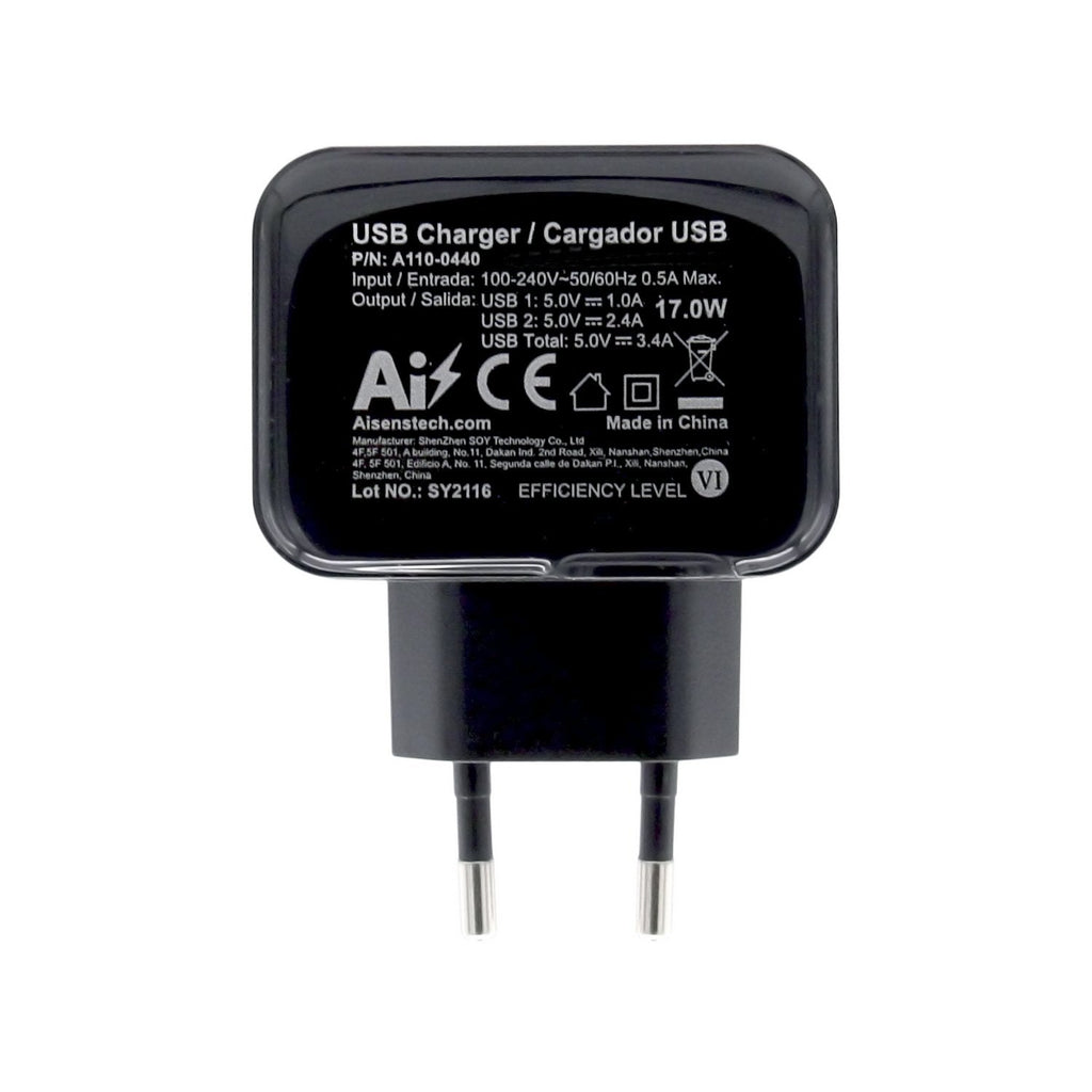 Gracias a la salida de 17W 3,4A, este cargador de pared puede cargar simultáneamente dos dispositivos USB a máxima velocidad (hasta 2,4A/Puerto USB).