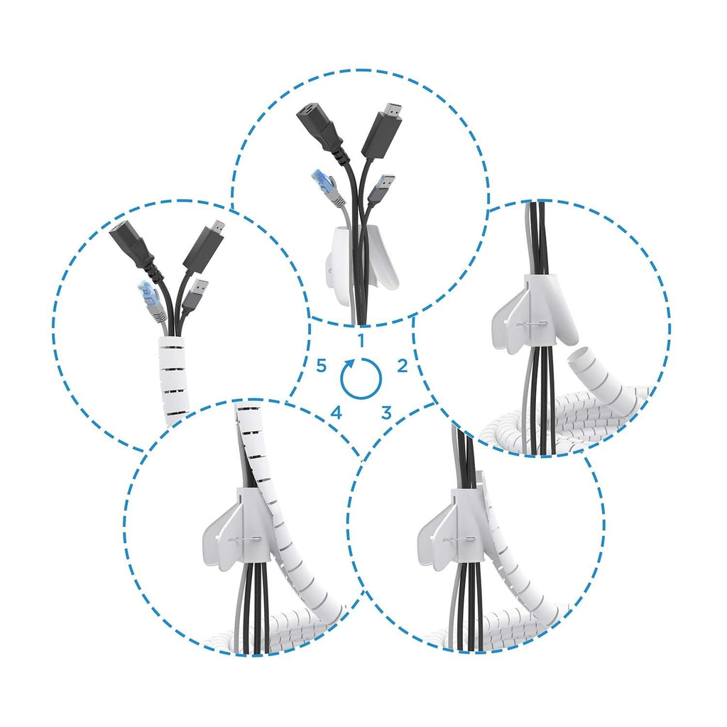 - Organizador de cables en espiral con capacidad de hasta 25mm de diámetro.