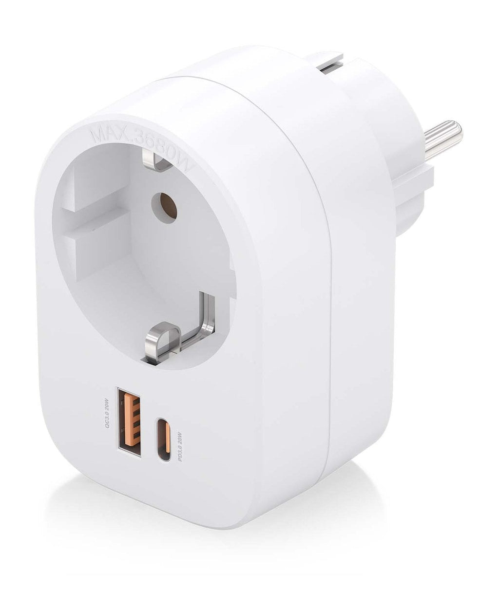 Regleta de pared multifunción con 1 toma Schuko, 1 puerto USB-C 20W PD3.0 y 1 puerto USB-A 20W QC3.0