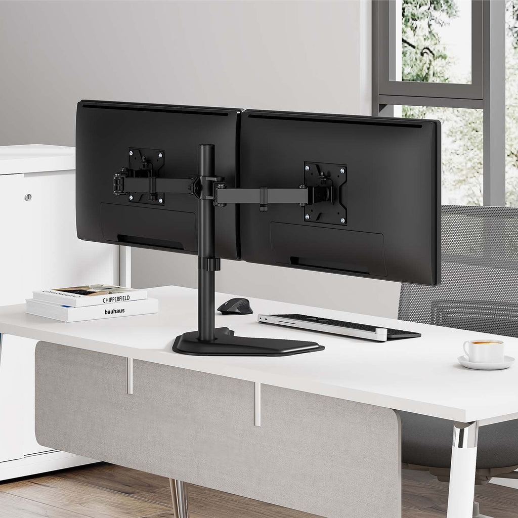 Soporte de mesa con peana eco giratorio e inclinable para monitor/TV (3 pivotes, 2 brazos) de 17”-32”