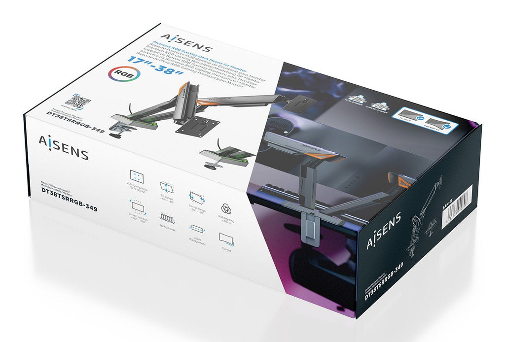 AISENS DT38TSRRGB-349 soporte para monitor 96,5 cm (38") Escritorio Negro, Blanco