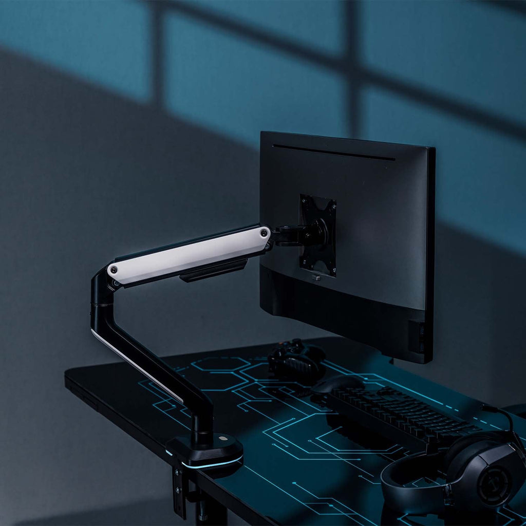 Soporte de mesa RGB gaming contrapeso giratorio e inclinable para monitor/TV (3 pivotes, 1 brazo) de 17”-32”