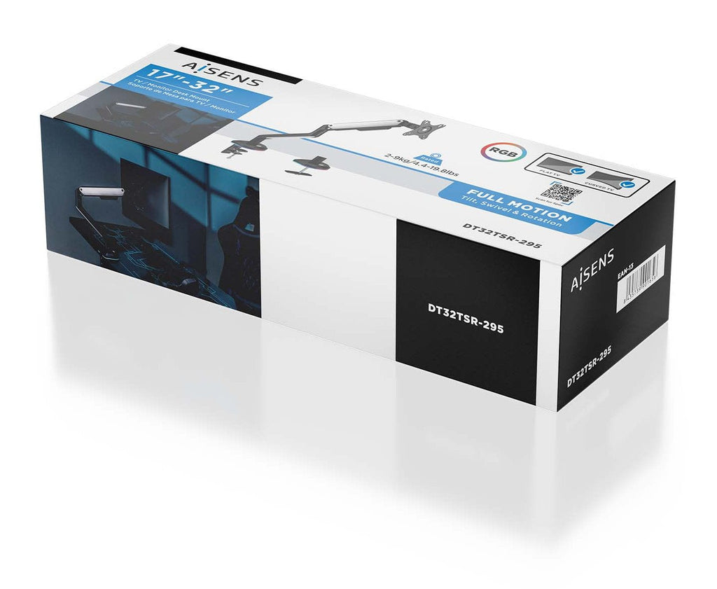 AISENS - Soporte De Mesa RGB Gaming Contrapeso Giratorio E Inclinable Para Monitor/TV 9kg (3 Pivotes, 1 Brazo) De 17-32, Negro-Blanco