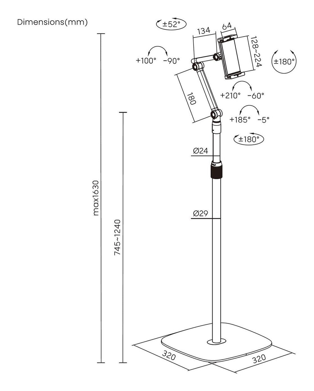 - Altura de soporte: 1630mm Max