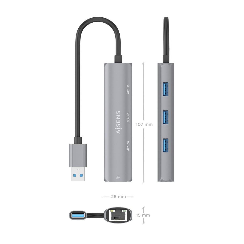 > Conversor USB-A a Gigabit ethernet, 3xUSB-A 5G