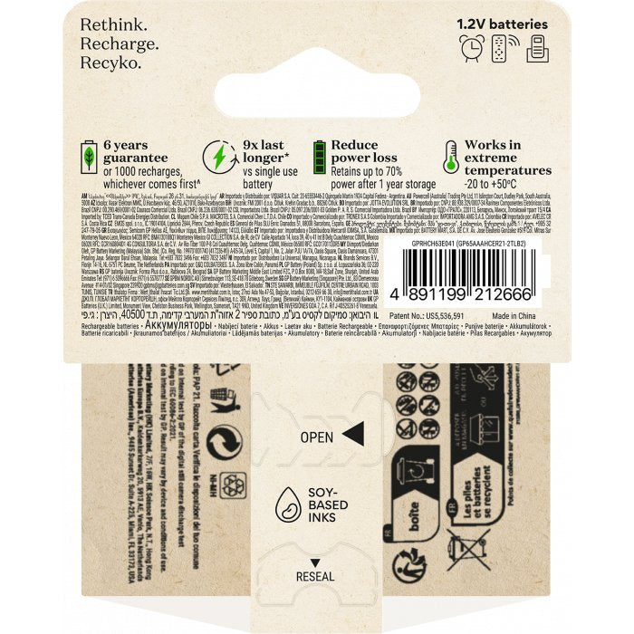 GP Batteries 201248, Batería recargable, AAA, Níquel-metal hidruro (NiMH), 1,2 V, 2 pieza(s), 650 mAh