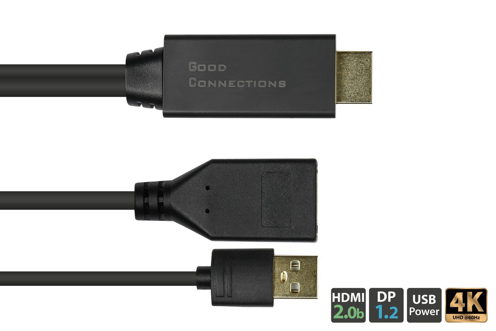 Alcasa HDMI-AD22 adaptador de cable de vídeo 0,3 m HDMI tipo A (Estándar) DisplayPort Negro