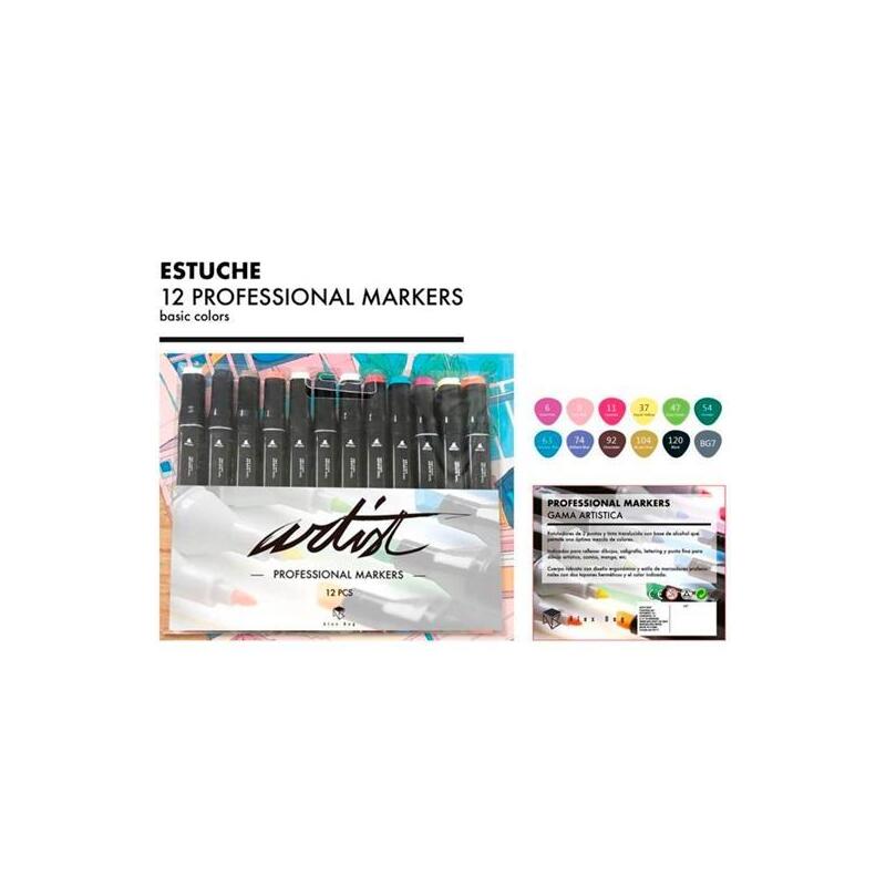Alex Bog Rotuladores Gama Artist Doble Punta Estuche De 12 C/Surtidos Básicos