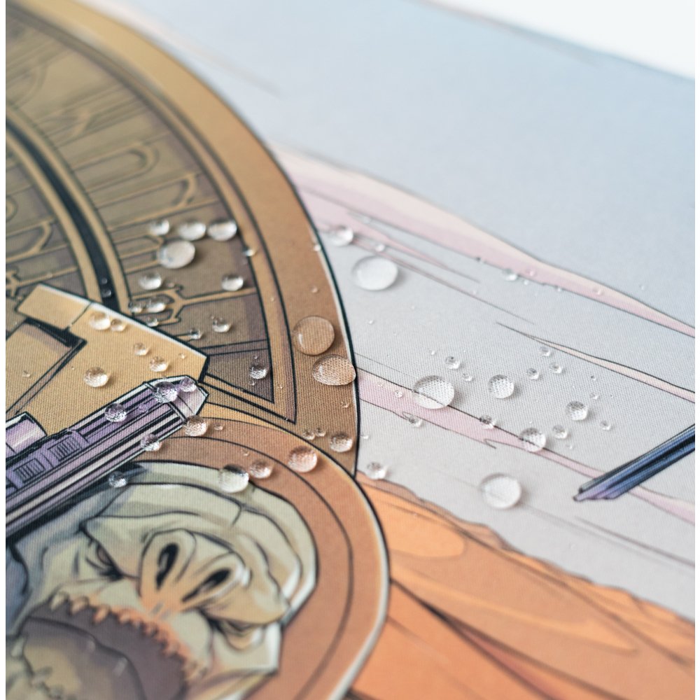 Protector de escritorio de superficie textil de alta densidad, óptima para un uso intensivo, preciso con cualquier tipo de ratón e impermeable. Bordes reforzados y base de goma antideslizante.