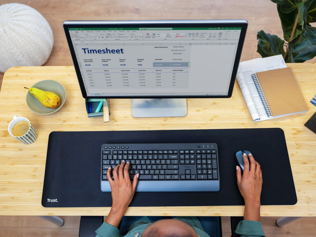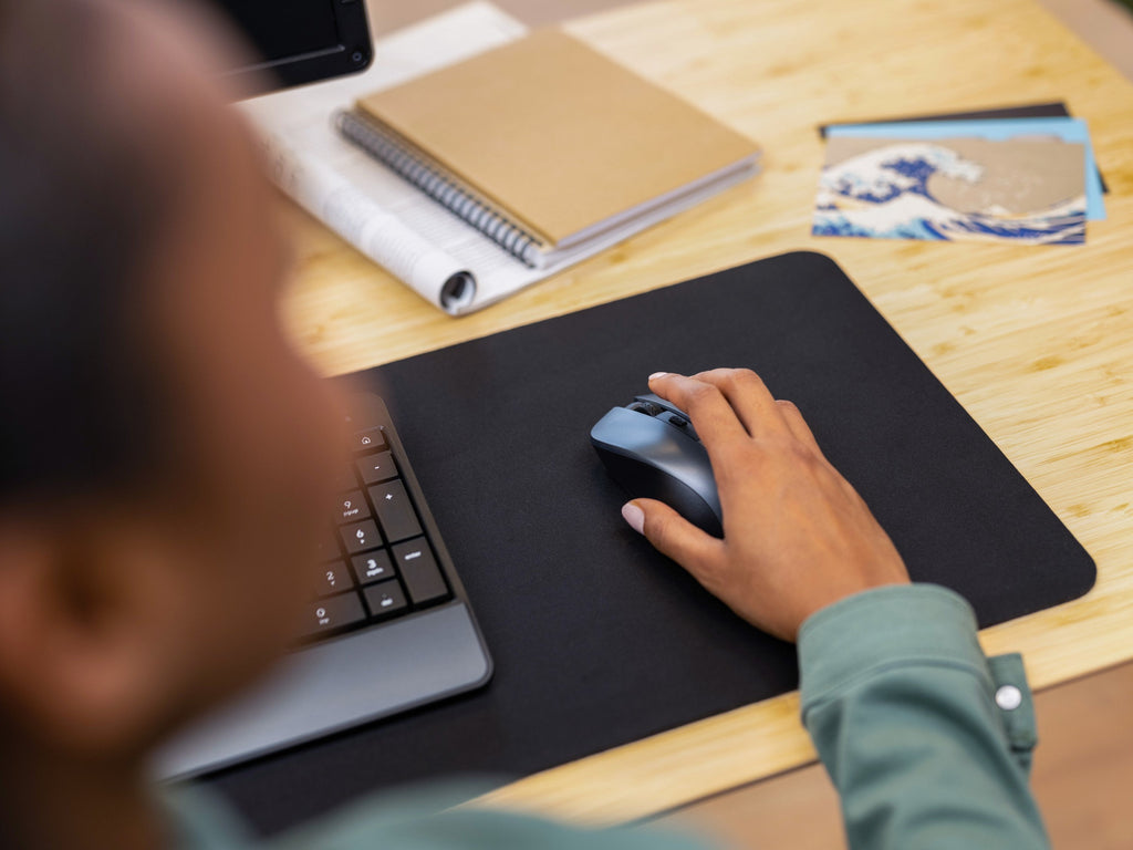 Alfombrilla de ratón de tamaño extragrande con textura de superficie optimizada y suficiente espacio tanto para el ratón como para el teclado