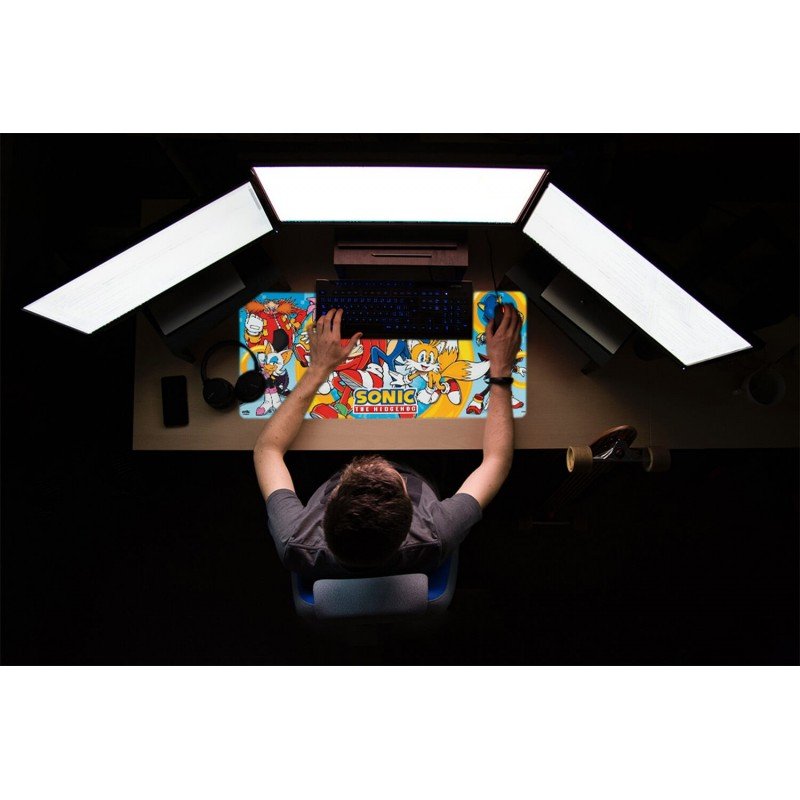 Este mousepad de Sonic The Hedgehog es el complemento ideal para darle a tu setup un toque original. Su tamaño XL de 80 centímetros de ancho por 35 de alto le aporta un espacio amplio que permite la colocación tanto del teclado como del ratón.