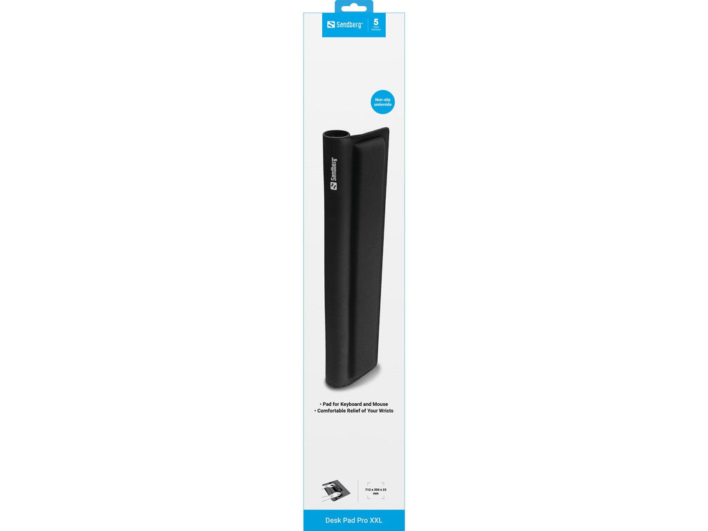 Sandberg Desk Pad Pro XXL es la amohadilla perfecta para tu teclado y ratón. Siempre se mantiene en su sitio gracias a su base antideslizante, incluso cuando muevas el ratón o presiones el teclado rápidamente. La almohadilla también dispone de un soporte para las muñecas para mayor comodidad. El soporte ayuda a liberar tensión de las muñecas al utilizar el teclado y el ratón. Bordes cosidos para ayudar a prevenir el deterioro.