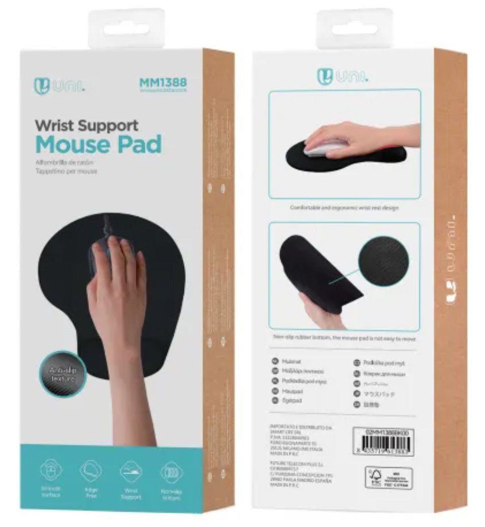 UNICO MM1388, Negro, Monocromo, Espuma de memoria, Caucho, Descansa muñecas, Base antiderrapante