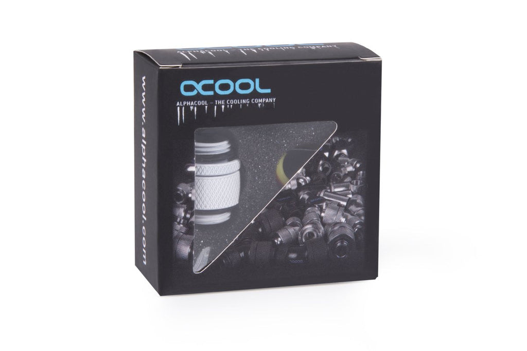 Alphacool 17489, Conector de manguera, Latón, Blanco, 1/4", CE, FC, RoHS, 22 mm
