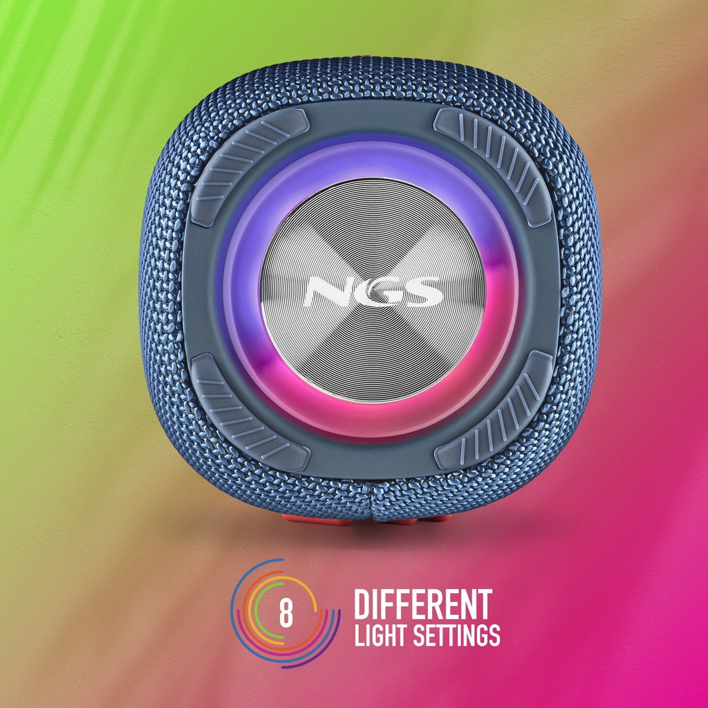 ALTAVOZ PORTÁTIL COMPATIBLE CON TECNOLOGÍA BLUETOOTH, LUCES RGB E IMPERMEABILIDAD IPX5.