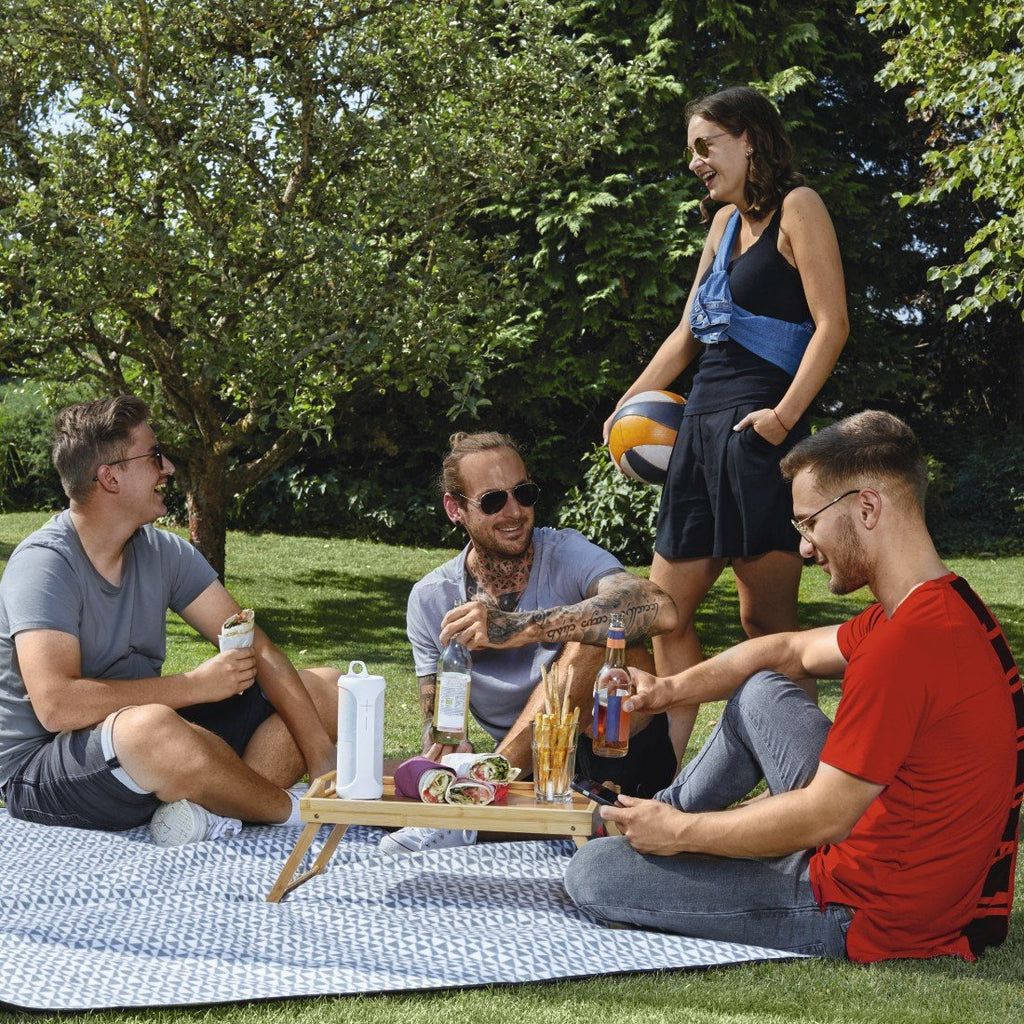 Perfecto para moverte con tu música a cualquier parte: el altavoz es compacto y cabe en un maletín, ideal para usarlo en casa, en el jardín, durante picnics o escapadas en coche. Incluye una funda de silicona con asa colgante ultraflexible, que funciona tanto para transporte como para almacenamiento sin complicaciones.